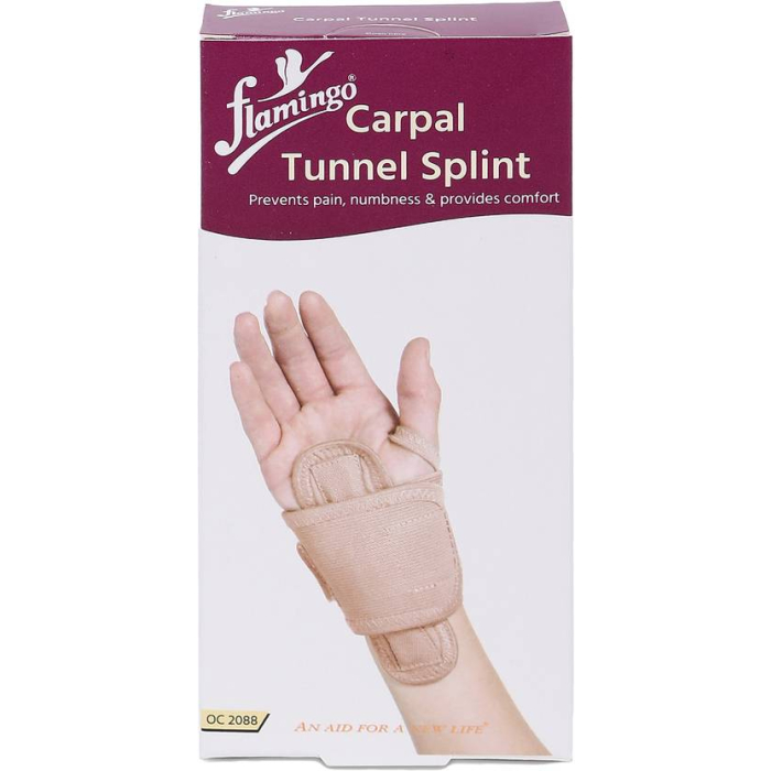 The Flamingo Carpal Tunnel Splint is designed to provide moderate support and stabilization for individuals suffering from mild to moderate carpal tunnel syndrome. By maintaining the wrist in a neutral position, the splint helps reduce pressure on the median nerve, minimizing pain, numbness, and tingling associated with repetitive wrist strain.Constructed from high-quality elastic material, the splint ensures a comfortable yet supportive fit suitable for extended daily wear. The padded light metal insert enhances wrist stability while allowing controlled movement, helping prevent excessive bending that can worsen symptoms. This design makes it ideal for individuals engaged in repetitive tasks such as typing, manual work, or sports activities.The wrap-around design with an integrated thumb loop allows easy self-application and secure adjustment, ensuring the splint stays in place throughout the day or night. Its universal design enables use on either the left or right wrist, offering flexibility and convenience.Lightweight and breathable, the Flamingo Carpal Tunnel Splint is suitable for use at home, at work, or during rehabilitation, providing consistent support and comfort while encouraging proper wrist alignment.