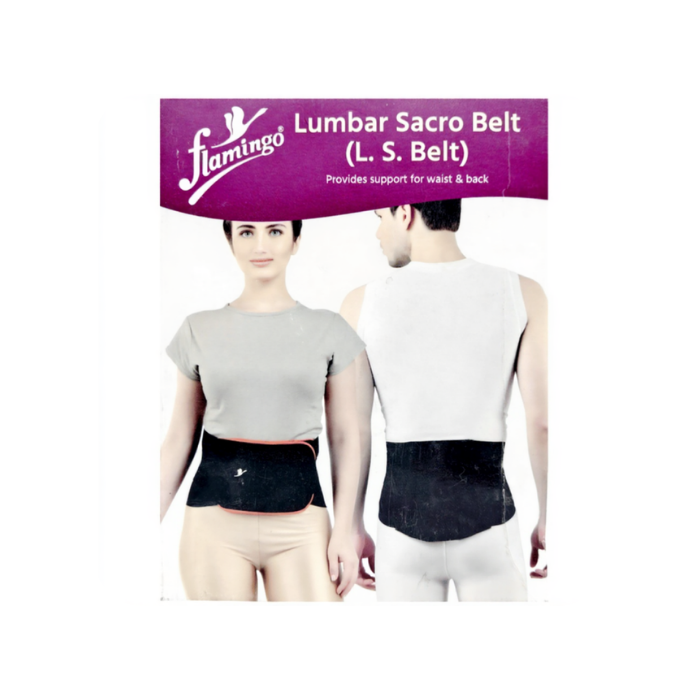 The Flamingo Lumbar Sacro Belt is designed to provide effective moderate support for individuals experiencing low back pain and lumbar-sacral discomfort. It is especially beneficial for conditions such as lumbar spondylolysis, degenerative disc disease, osteoporosis, and posture-related back strain. By stabilizing the lumbar and sacral regions, the belt helps relieve pain, reduce strain, and promote proper spinal alignment.Crafted using soft elastic material combined with an EVA pad, the belt delivers optimal compression while maintaining comfort for extended daily wear. The integrated support system includes five plastic splints—four narrow splints and one wide central splint—which work together to provide enhanced stability and partial immobilization of the lower back.The adjustable design allows for customized compression, ensuring a snug and secure fit without restricting normal movement. This makes the belt suitable for use during daily activities, work, rehabilitation, or post-operative recovery. Its breathable construction helps prevent excessive heat buildup, ensuring comfort even during prolonged use.Whether used for therapeutic support or preventive care, the Flamingo Lumbar Sacro Belt is a reliable solution for managing lumbar discomfort and improving overall mobility and posture. "