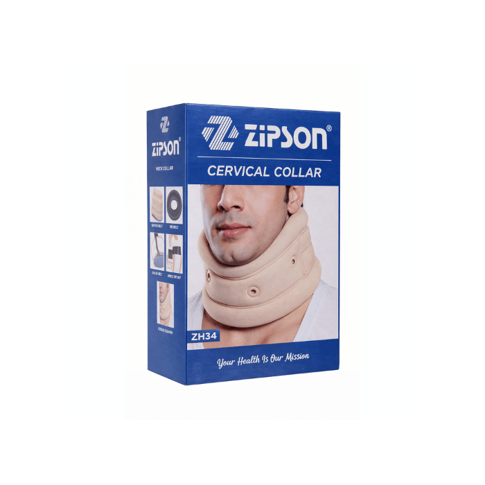 The Zipson Soft Foam Cervical Collar is designed to provide partial and controlled immobilization of the cervical spine in cases of neck pain, stiffness and post-operative recovery. Made from soft foam with a cotton outer layer, it offers gentle support while maintaining comfort for extended wear.This cervical collar helps reduce stress on neck muscles, improves posture and provides relief from conditions such as cervical spondylitis, cervical disc disease, neuralgia and stiff neck. Its lightweight and pull-on design makes it easy to wear and remove, making it suitable for daily ortho and neuro care.Recommended for adults, the collar supports proper neck alignment and helps prevent further strain or injury during recovery.